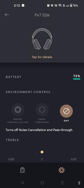 The Bowers & Wilkins Music app also remains the preferred application for managing the Px7 S2e; the older Bowers & Wilkins Headphone Control app which was designed for earlier models does not work with the Px7 models.